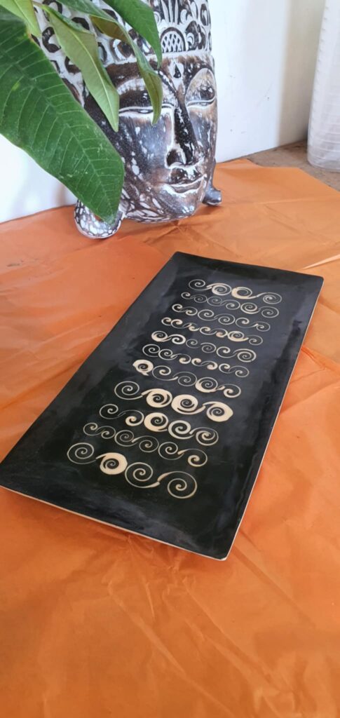 Kézzel készült balinéz fa tál fahéj berakással – 23x41 cm Ez az egyedi, kézzel készült hosszúkás fa tál közvetlenül Baliról érkezett, és a sziget tradicionális kézművességének igazi mestermunkája. A tál különlegességét a  mintázata, fahéj berakás adja, amely természetes színeivel és textúrájával egyedi, meleg hangulatot áraszt. Méret: 23 x 41 cm Anyag: természetes fa és valódi fahéj berakás Kivitel: kézzel készült, balinéz kézműves termék Minta: kerek, természetes tónusú felület Felhasználás: stílusos tálalóként, dísztárgyként vagy önmagában dekorációként is megállja a helyét Ez a tál nemcsak funkcionális, de különleges karaktert és természetközeli hangulatot visz otthonodba – tökéletes választás azok számára, akik értékelik az ...