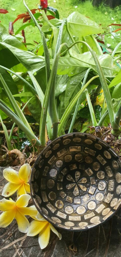 Kókuszdióból készült tál kagylóhéj belsővel – különleges balinéz kézműves alkotás Ez az egyedi, kézzel készített tál Bali szigetének kreatív kézműves hagyományait tükrözi. Alapja természetes kókuszdió, amelyet a helyi mesterek gondosan megmunkálnak, majd a belső felületet ragyogó kagylóhéj mozaikkal díszítik. A kókuszdió és a kagylóhéj különleges kombinációja egyszerre természetes és elegáns megjelenést ad. A balinéz kézművesek híresek arról, hogy mindent újrahasznosítanak és ötletesen felhasználnak, így ezek a tálak nemcsak szépek, hanem a fenntartható szemléletet is hordozzák. A tál különleges dísztárgyként, de akár praktikus használati tárgyként is remekül megállja a helyét – legyen szó ékszertartóról, apróságok tárolásáról vagy egyszerű dekorációról. Ajándéknak is ...
