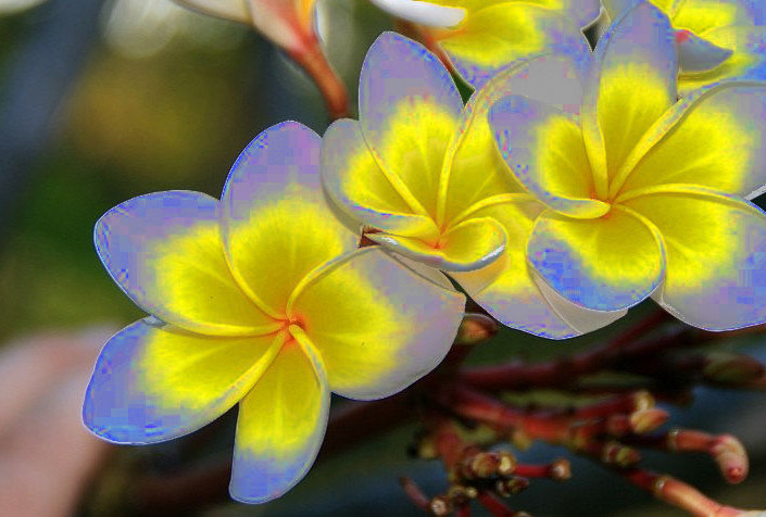 2 évvel ezelőtt vettem egy plumeria növényt a facebookon, melynek állítólag zölden kellene virágoznia. Idén virágzott, de csak fehér / sárga. Valami rosszul csináltam? Ilyen és hasonló megkereséseket nagyon gyakran kapunk. Sok vásárló bizonytalan, vagy azt kérdezi, hogy kínálunk-e már fekete / fehér, kék és kék-narancs növényeket az üzletben. Sajnos nem tudunk ilyet ajánlani, MERT EZEK A SZÍNEK NEM LÉTEZNEK! Gyakran figyelmeztettem az ilyen hamis színekre a különböző platformokon a vevőinket , de sajnos az ügyfelek minden évben beleesnek ebbe az átverésbe .Nagyon csábító, hogy olcsón vásárolható egy különleges szín. Ha különleges, egyedi színű Plumeria virágot látsz, ne vedd meg, vedd fel velünk a kapcsolatot. Segítünk, hogy van-e egyáltalán ilyen szín vagy színkombinációja a plumeria rubra-nak. Nem létező Plumeria rubra színkombináció A magokon keresztül történő öröklés esetén az új növény legfeljebb 50% tulajdonságot örököl a “szüleitől”.Ne hagyd, hogy a különlegesnek tűnő színek elcsábítsanak!